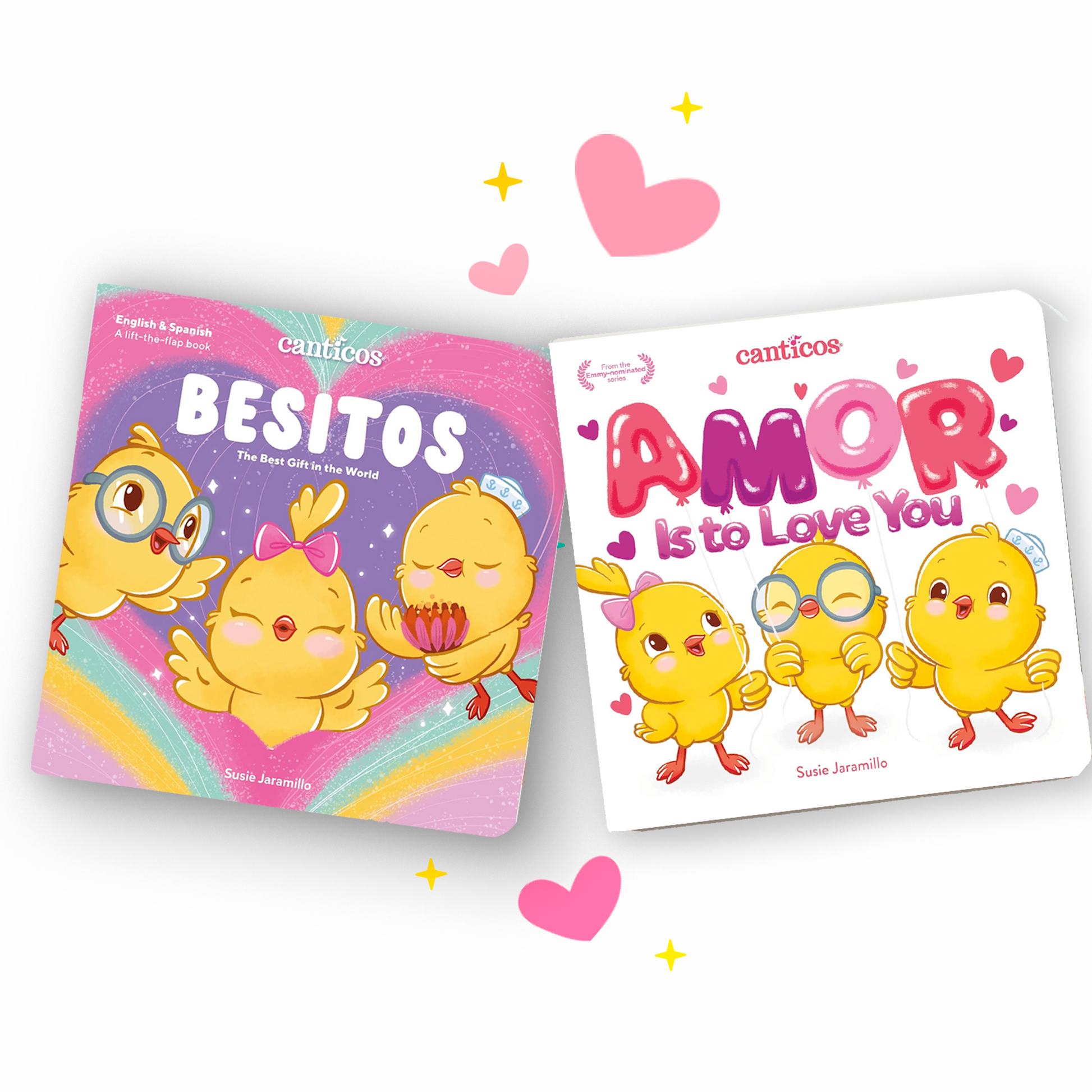 Spread love with the Canticos Amor & Besitos Bilingual Book Bundle, a heartwarming duo that celebrates love through cuddles, kisses, and music.
